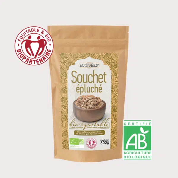 Naturellement riche en fibres et en minéraux, il offre une saveur douce et légèrement sucrée qui rappelle l’amande et la noisette. Les souchets peuvent se consommer tels quels en encas ou être réhydratés pour être utilisés dans différentes préparations.